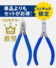 薄刃なのにガンガン切れる「薄刃プラニッパー」と先端での切断が可能で狭所のダボ切りもバシバシ攻められる「エッジニッパー」がセットになりました。 Twitter・YouTube…SNSで人気爆発!プロモデラーも愛用のプラモ制作の力強い味方です。
