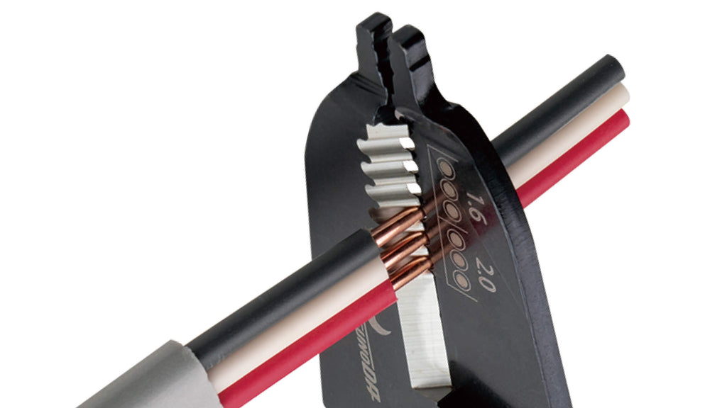 | VVFストリッパー(VAS-230) | 【機能】 ・VVF線外装ストリップ:Φ1.6mm・2.0mmx2心・3心 ・VVF線芯線被覆ストリップ:Φ1.6mm・2.0mmx2心・3心 ・切断能力:VVFケーブルΦ1.6mmx2心/Φ2.0mmx3心 |